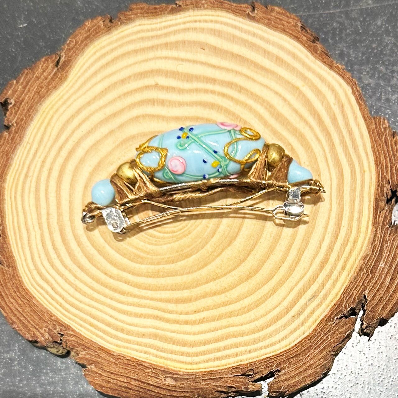 ヴェネチアンビーズをイタリアンシルクで巻き付けたバレッタです。