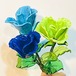 ヴェネチア ムラーノ島からガラスのバラが届きました。 花びらや葉っぱも1枚1枚が芸術的なフォルム、まるで本物、 それ以上に生き生きして美しく輝いています。 ヴェネチアンガラスの花弁を 幾重にも重ねてシルク糸を巻き付けて仕上げます。 贈り物として一輪添えるだけで、 送り主のセンスが輝く、そんな一品です。 カラー:Blu(ブルー) ・花びら5枚 ・ガク3枚 ・リーフ2枚