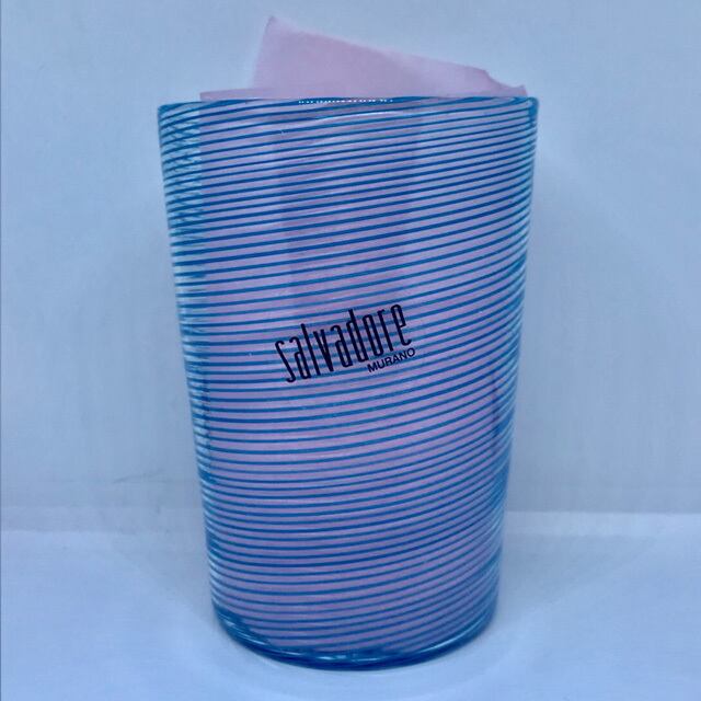 細かいレース模様のガラス細工フィリグラーナ。 ムラーノ島のサルバドーレ工房からの直輸入です。 飲み口の薄さや縞模様が職人の技が光ります。 飲み物を注いで氷を入れると、なんとも言えない美しい音がします。 是非お手に取り本物を味わって見てください。 カラー:ライトブルー サイズ:高さ 10.5cm 飲み口直径 7.5cm 底直径 6cm 厚み 1.0mm~1.5mm