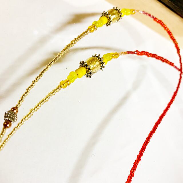 毎日使うマスクを実用的にかつエレガンドに演出できる活用的なアクセサリーをご提案致します。 マスクを取り外した時に首からかけているコードで 吊るしているので、マスクを置いたりしまったりする手間がなく かつ手で触る事も少ないので衛生的にもgoodです。 カラー:イエロー×オレンジの煉獄杏寿郎カラー