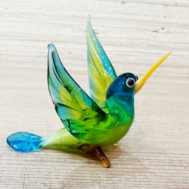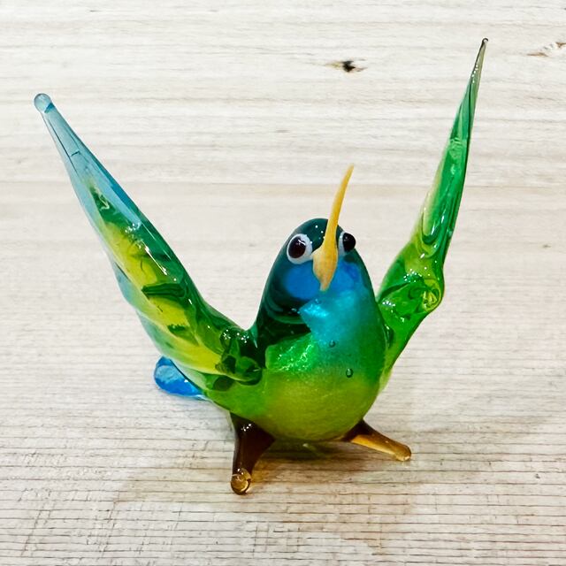 ヴェネチアンガラスのハチドリ イタリア ヴェネチア の伝統工芸品であるヴェネチアンガラス マエストロから店主が直接買い付けて来たトリさんです。 ガラスケース入りでお届けします。